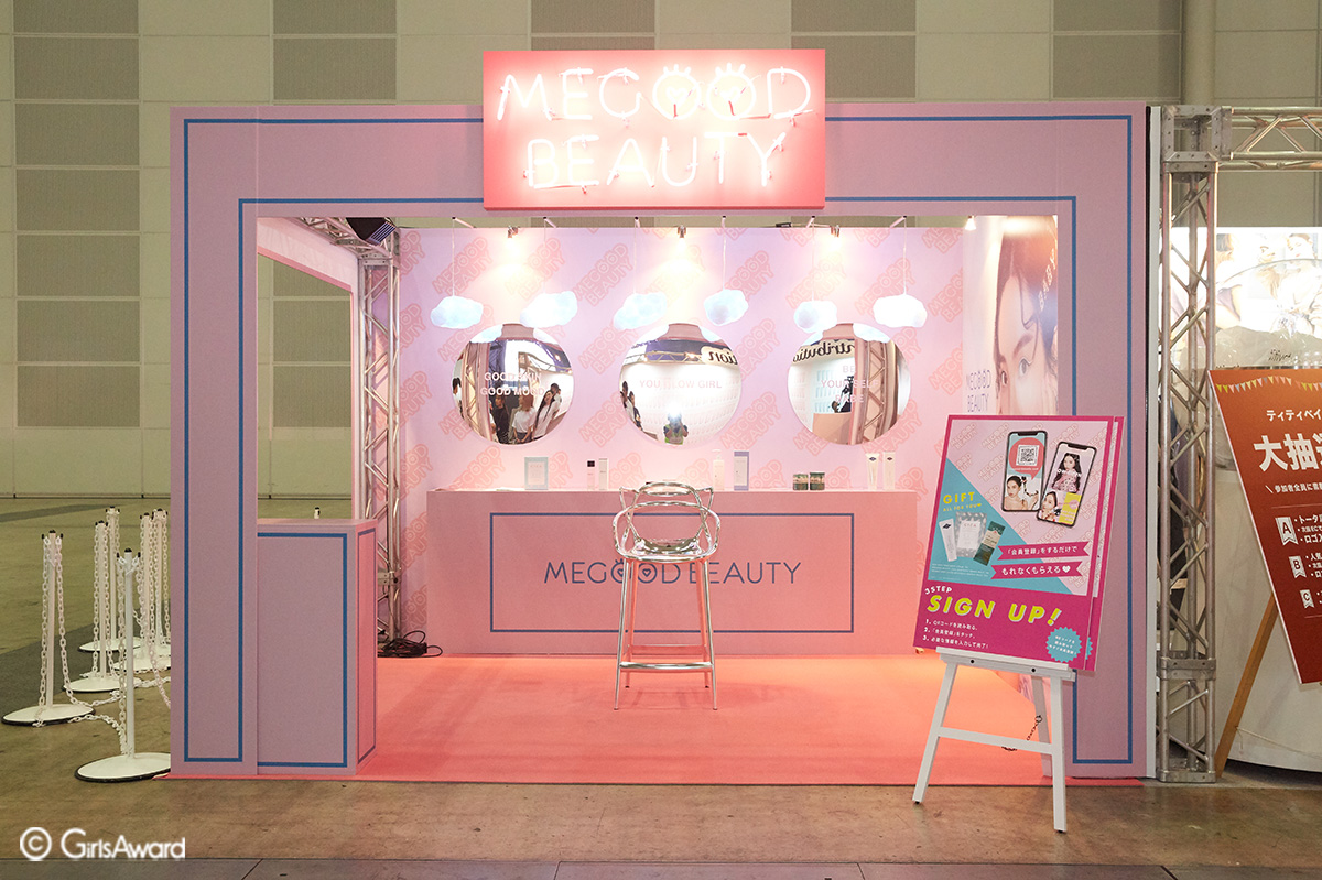 ブースでは実際にMEGOOD BEAUTYで買えるコスメを体験できたり、豪華なサンプルセットも配られるなど、ブースは常に女の子でいっぱいでした♪