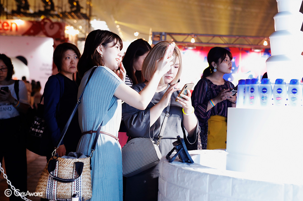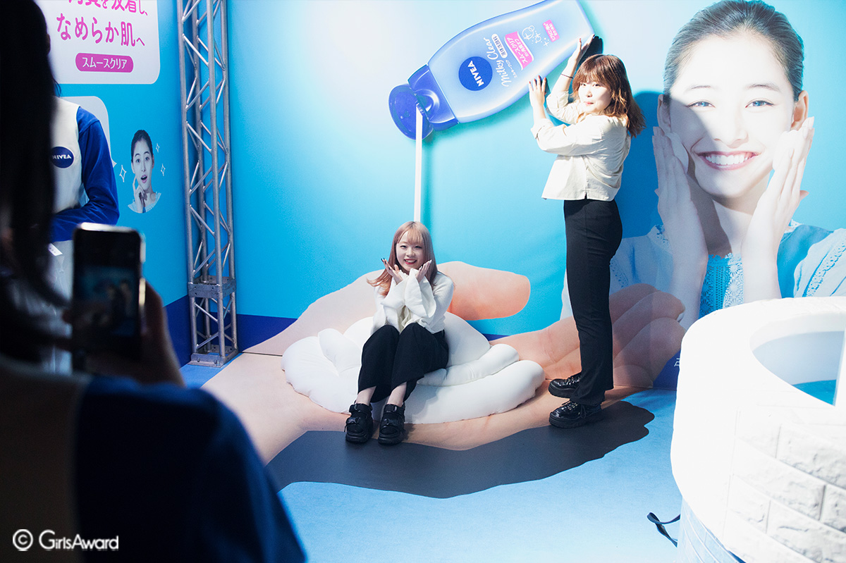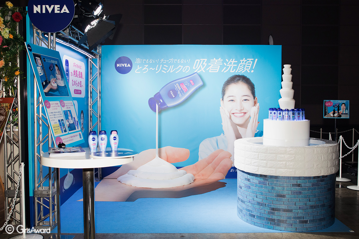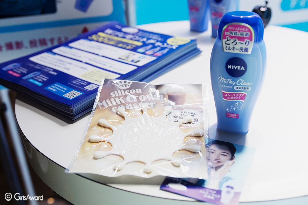 とろ~りミルクの吸着洗顔「ニベア ミルキークリア」を先行体験できるブースはとろ~りミルクを疑似体験できる新体験のフォトスポットや、巨大な”ミルキーファウンテン”が登場!多くの女の子が商品の世界観を堪能していました♪