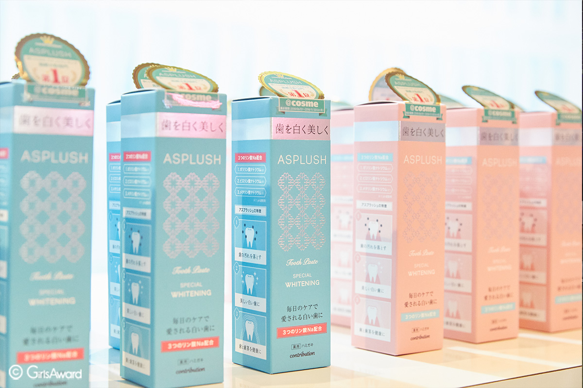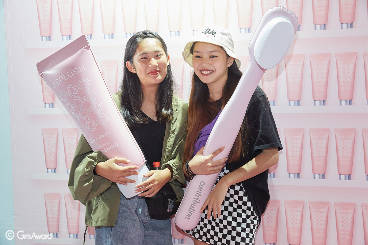 可愛いピンク色と水色のフォトブースで撮影後はそのまま抽選会に参加!当たると、ASPLUSHの「毎日のケアで愛される白い歯に」なれちゃうホワイトニング歯磨き粉をゲットできちゃうので大人気でした~♡